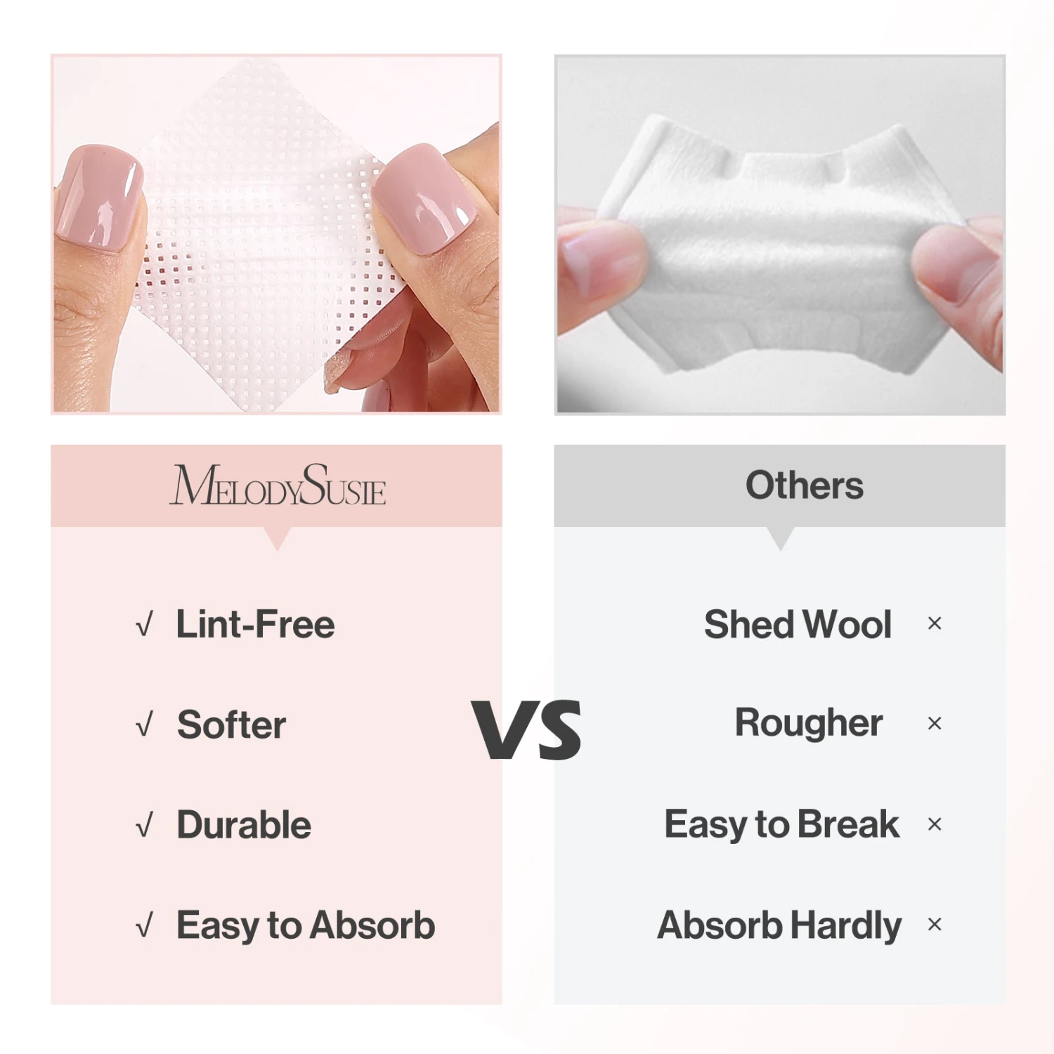 - Lint Free Nail Wipes: MelodySusie Lint Free Nail Wipes are made of high-quality non-woven fabric, soft, durable and easy to absorb, which is harmless to your nails and skin. In addition, these nail polish remover wipes won’t shed wool everywhere, fully meet your needs for tidying and cleaning.