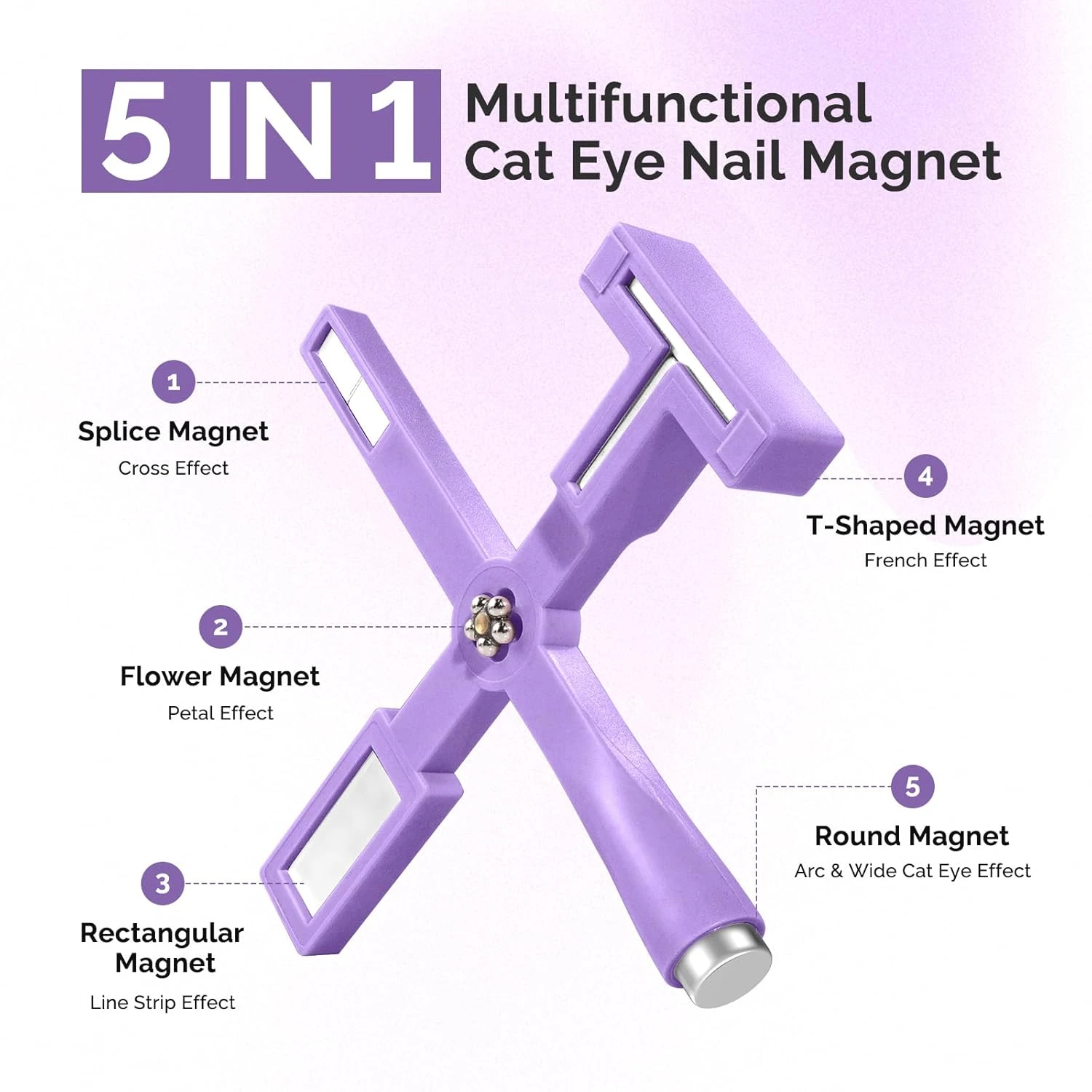 - Multifunctional Cat Eye Magnet: Equipped with 5 unique magnet heads, this 5-in-1 nail polish magnet allows you to create a variety of stunning cat eye effects, including the elegant French effect, captivating black hole, and exquisite floral designs. Unlock your creativity and personalize your cat eye nail art with this versatile nail magnet!