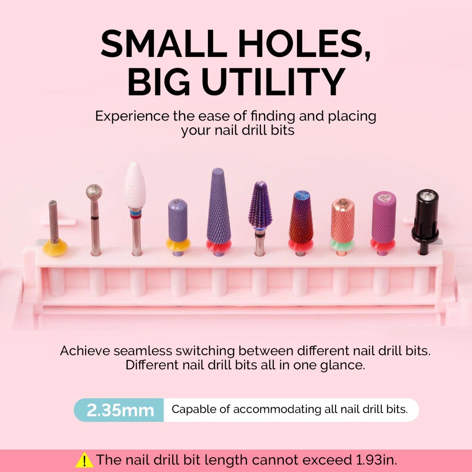 - Separate Compartment Design: Make nail accessories look tidy and orderly. It allows you to find the nail tools you need easily and quickly, improving efficiency to enjoy a better nail art experience. No mess on your nail art table and no mess on your travel bag. The fixed-position design prevents the nail drill bit from scratching other tools. Keep everything organized and stable, avoiding the damage caused by collision.