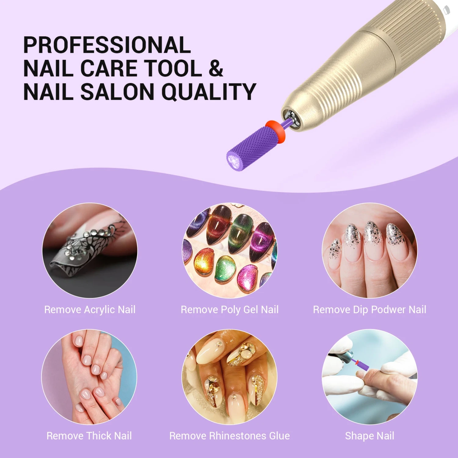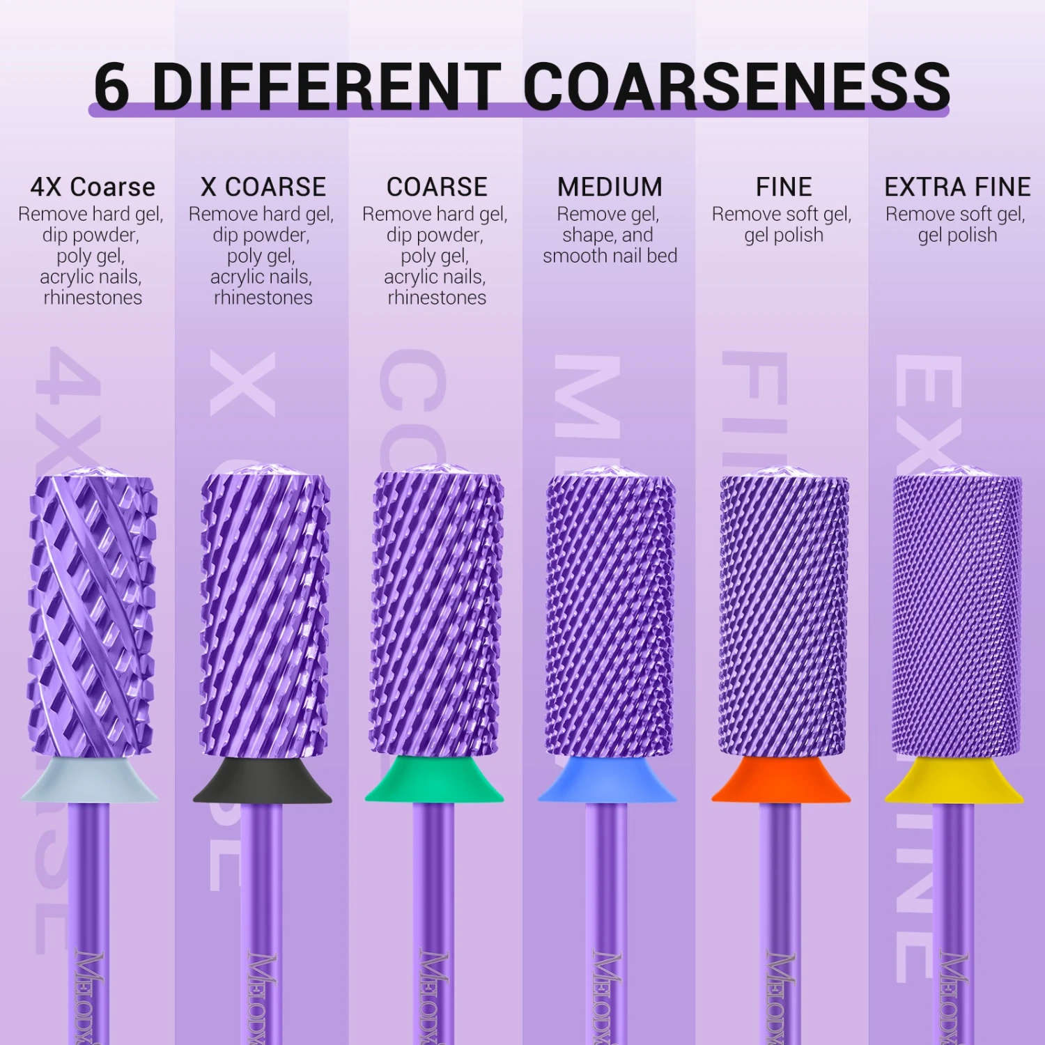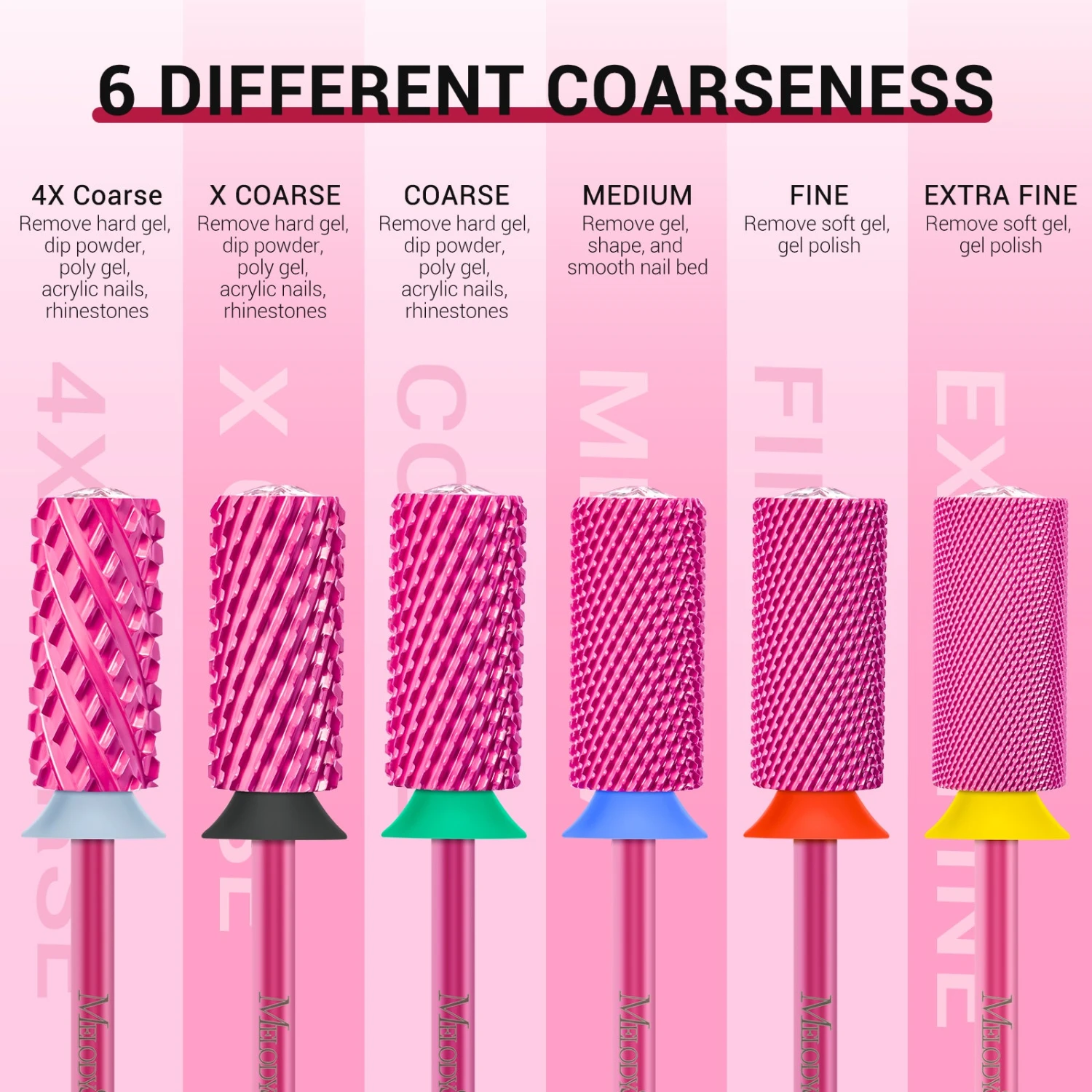 - Professional Nail Drill Bits: Made of the hardest YG6X carbide tungsten material, this high-precision machining nail bit comes with excellent heat dissipation, low vibration, low noise, and hard-wearing features. Fast to remove acrylic nails, dip powder, polygel, and hard gel nails. A touch of sparkle is added with a special crystal top accent that is located at the top of the barrel.
