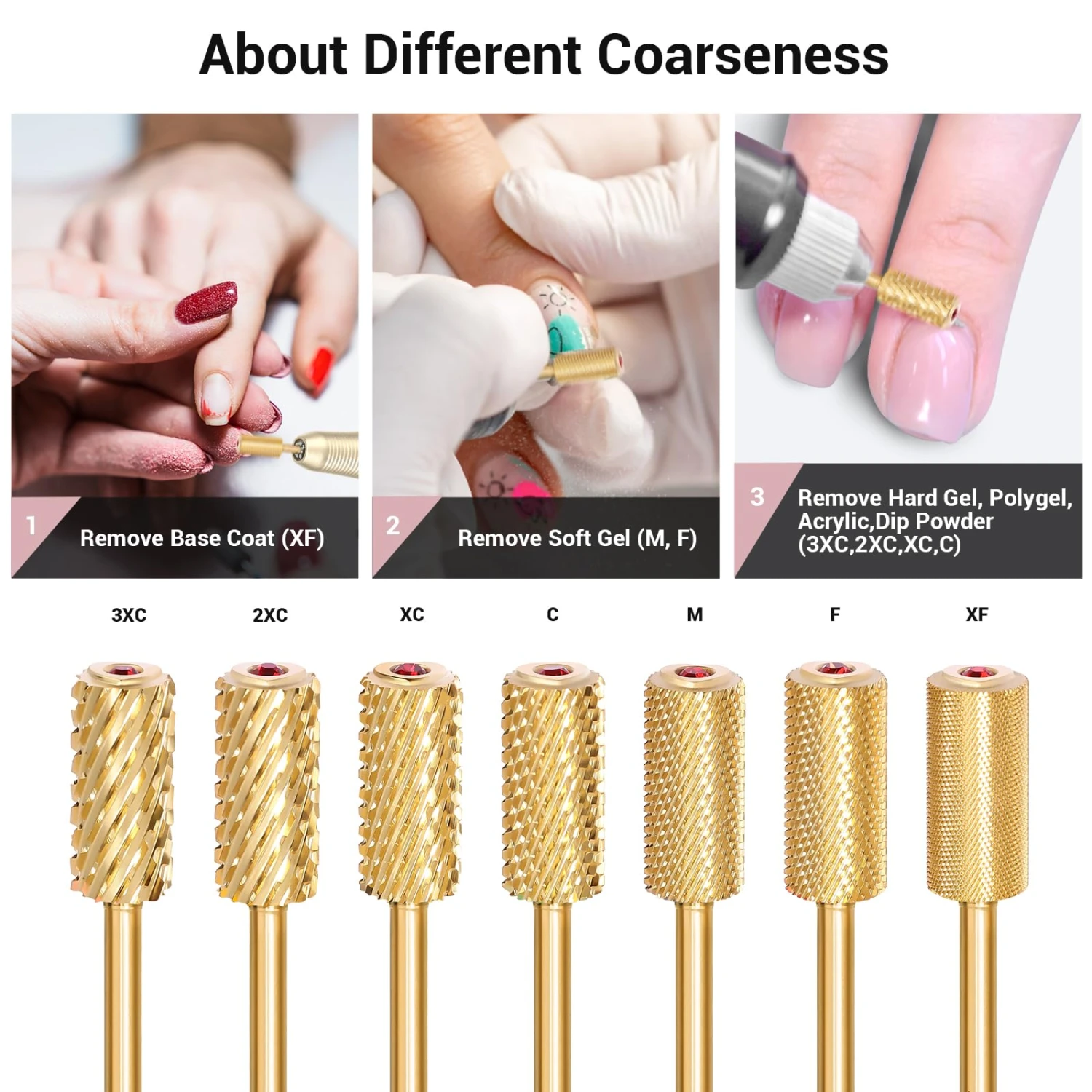 - Professional Nail Drill Bits: Made of the hardest YG6X carbide tungsten material, this high-precision machining nail bit comes with excellent heat dissipation, low vibration, low noise, and hard-wearing features. Fast to remove acrylic nails, dip powder, polygel, and hard gel nails.