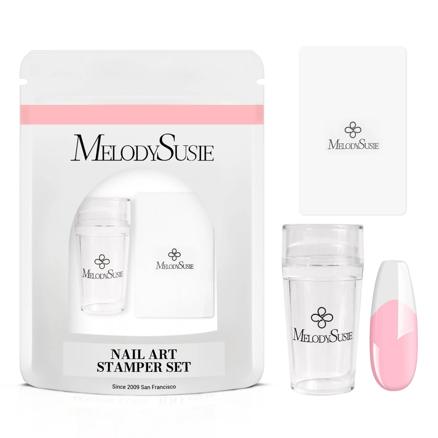 - Nail Stamping Kit: This kit contains 1 nail art stamp and 1 scraper. The nail art stamp tool can help you create French manicures quickly. Whether you are a novice or a salon manicurist, you can easily create fashionable nail art.