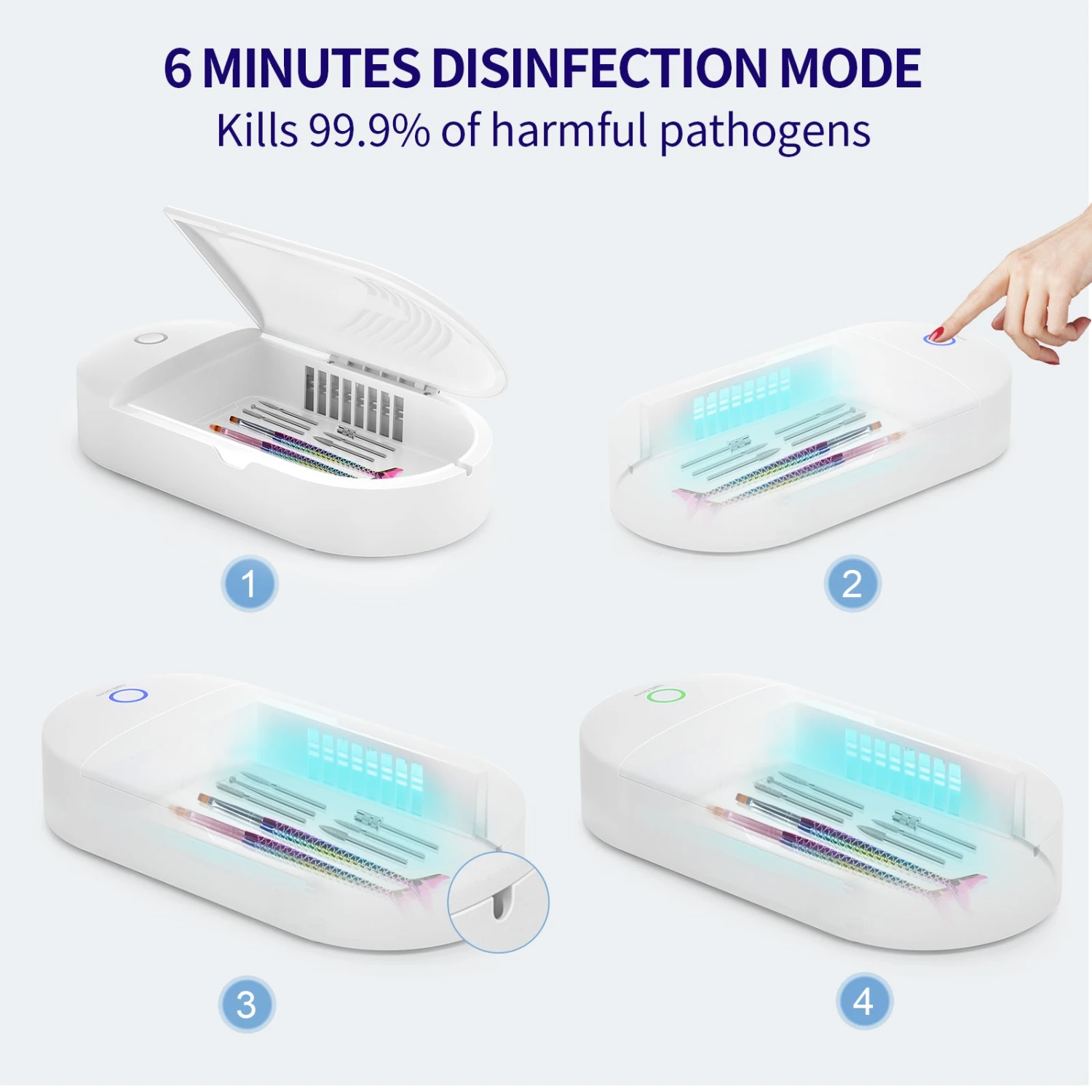 - Multifunctional use – It can also sanitize anything that fits, ideal for nail dust remover brush, steel edge cutter, sanding bands and any other small objects.
