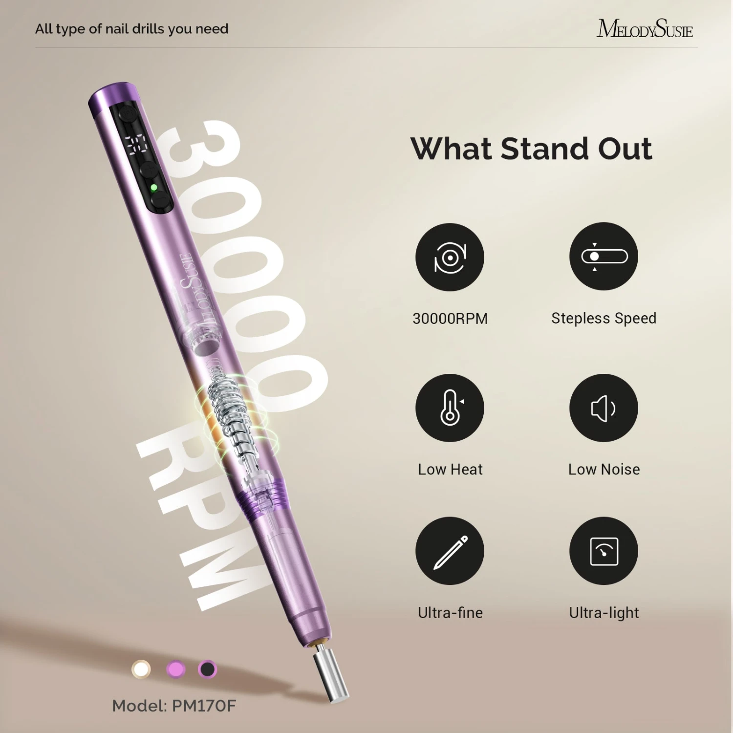 Precision & Power – PM170F Nail Drill Pen: Designed for effortless manicures, the PM170F rechargeable nail drill pen offers precision and convenience in a sleek, compact design. With powerful performance, low vibration, and a comfortable grip, it ensures smooth, professional results while being easy to use anywhere.
