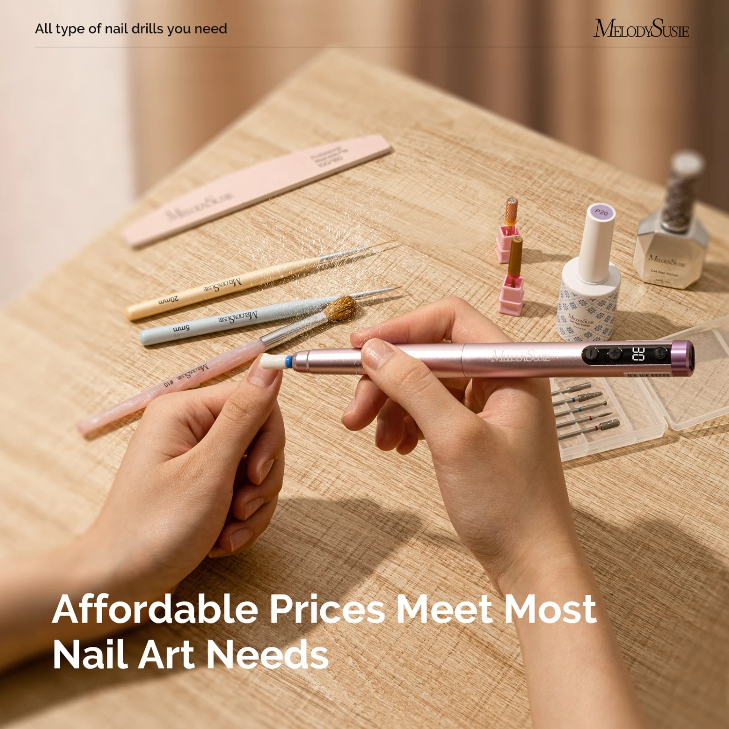 This All-In-One Set Includes: 2 Nail Drill Bits – High-quality bits for shaping, filing, and refining nails. Exquisite Nail Stickers and Rhinestones– Elevate your nail designs with delicate, stylish embellishments. Sponge Buffer – Perfect for smoothing and refining nails before polish application.