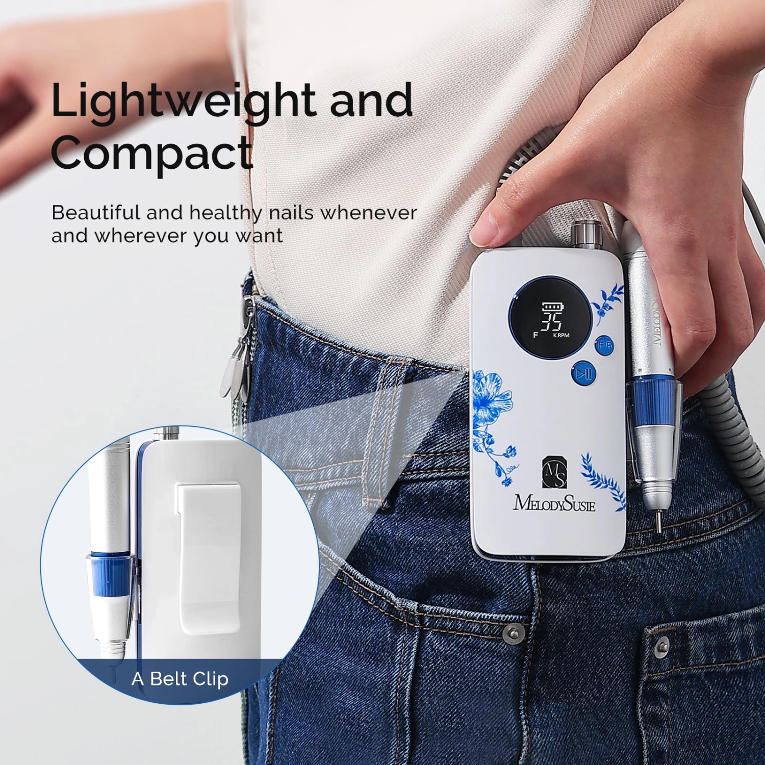 - Top-Quality Nail Drill: The SM200F Plus nail drill is cordless and rechargeable, offering you a flexible and portable experience. Its large-capacity battery ensures long-lasting performance, making your work more consistent. Additionally, the nail drill is ideal for both salon and home use due to its low noise and low vibration design.