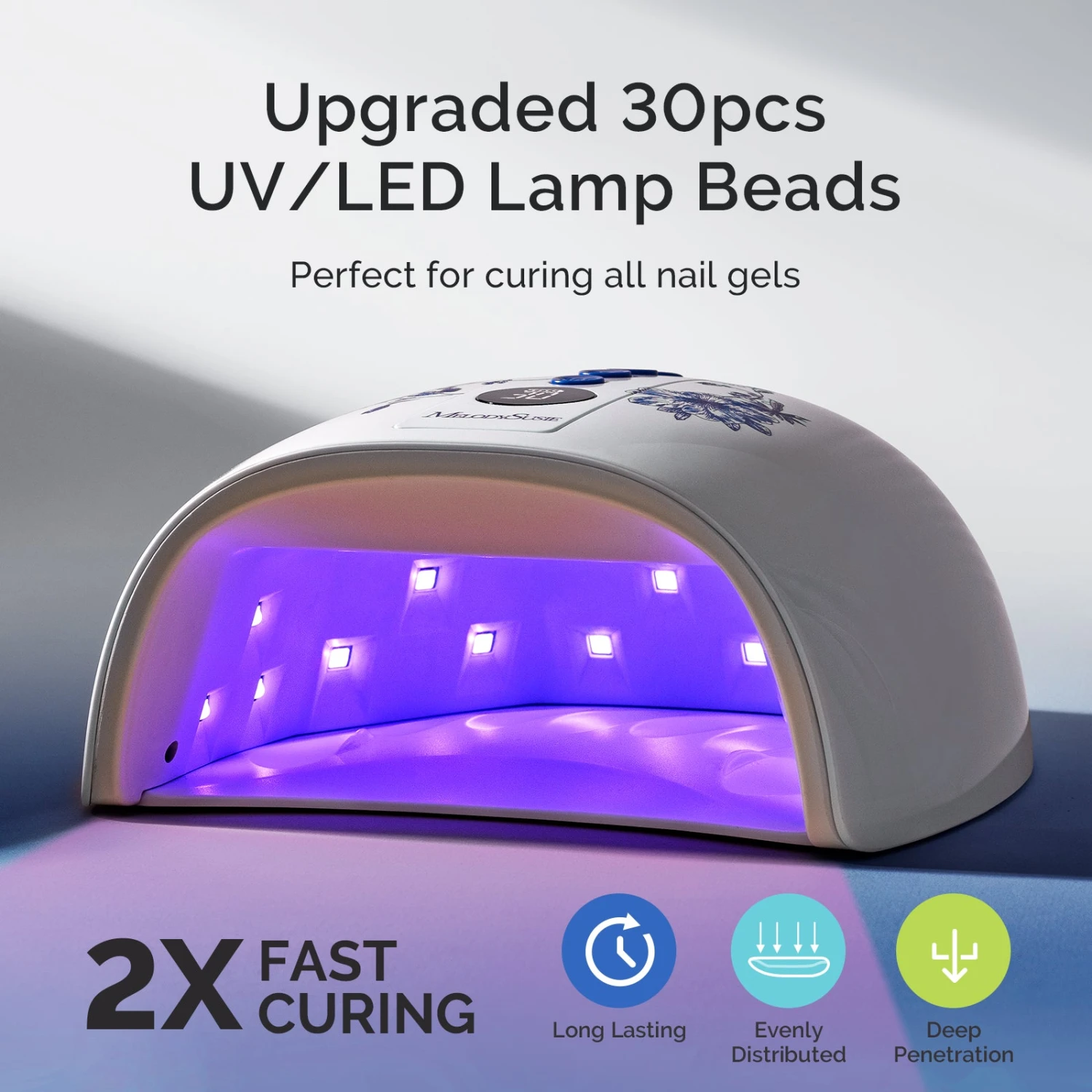 - Rechargeable Nail Lamp: The P-Plus30G nail lamp features 30 upgraded UV/LED light beads, curing all gel types with ease. Customize your curing time with three settings (30s/60s/99s) and enjoy a comfortable manicure experience with its 99s low-heat mode. Its detachable base also provides ample space for easily switching between manicures and pedicures.