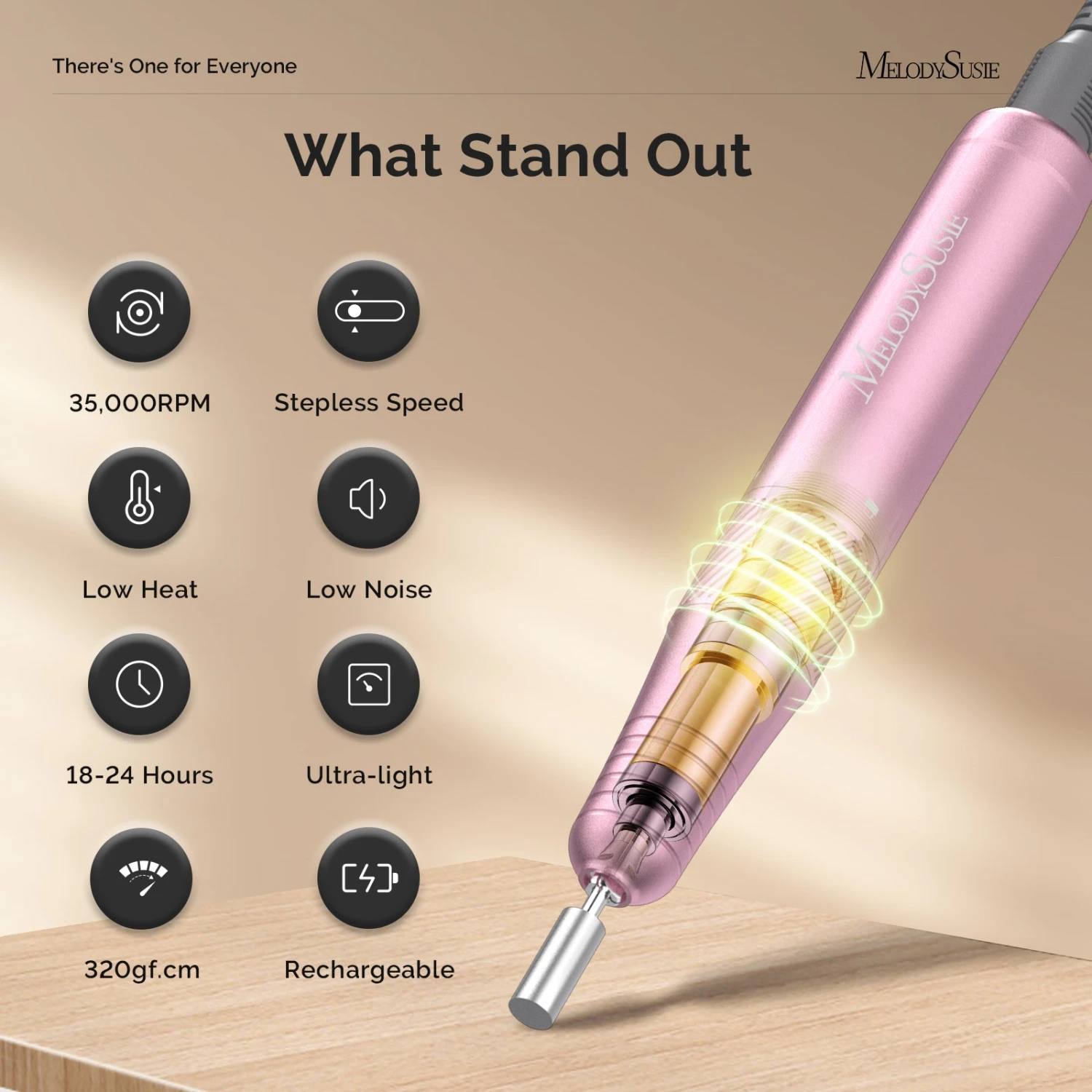 - Salon-Grade Nail Drill: The advanced SM320G nail drill delivers up to 35,000 RPM and offers super long, impressive cordless use on a full charge—perfect for all-day work in both salons and at home. Engineered with low vibration and efficient heat dissipation, it ensures a smooth, comfortable, and professional-grade manicure experience.